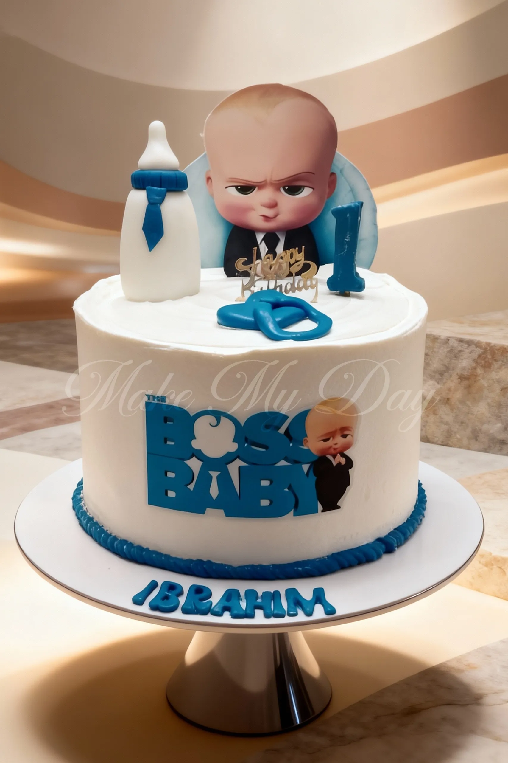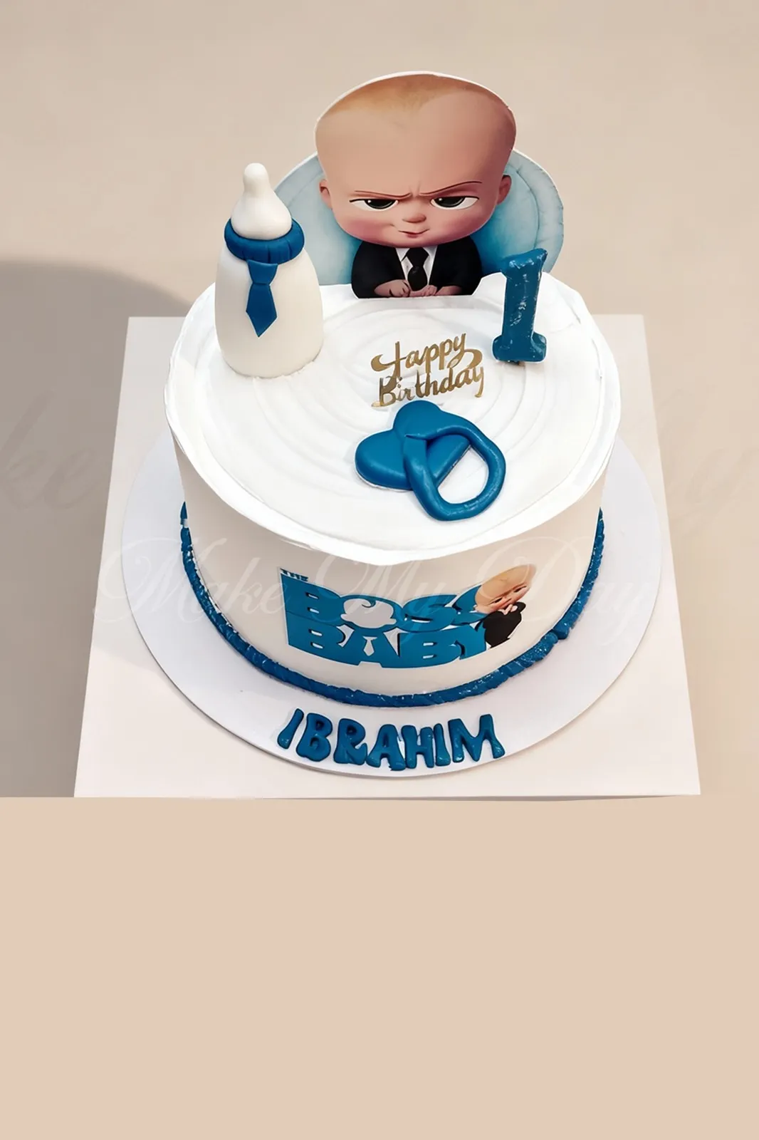 Boss Baby customized birthday theme cake is designed to bring fun, charm, and personality to baby celebrations. Featuring a bold Boss Baby character, soft neutral tones, and playful detailing, this cake becomes a delightful centerpiece for joyful moments.